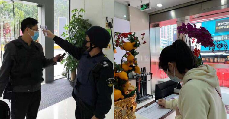 疫情發(fā)生后,寧波銀行深圳分行第一時間為網(wǎng)點員工準(zhǔn)備了體溫計、洗手液、酒精、手套、口罩和護(hù)目鏡等防疫物資,督促員工測體溫、勤洗手、戴口罩,做好安全防護(hù)工作。網(wǎng)點做好到行客戶體溫檢測和基本情況登記工作,引導(dǎo)客戶減少聚集,快速辦理業(yè)務(wù)。