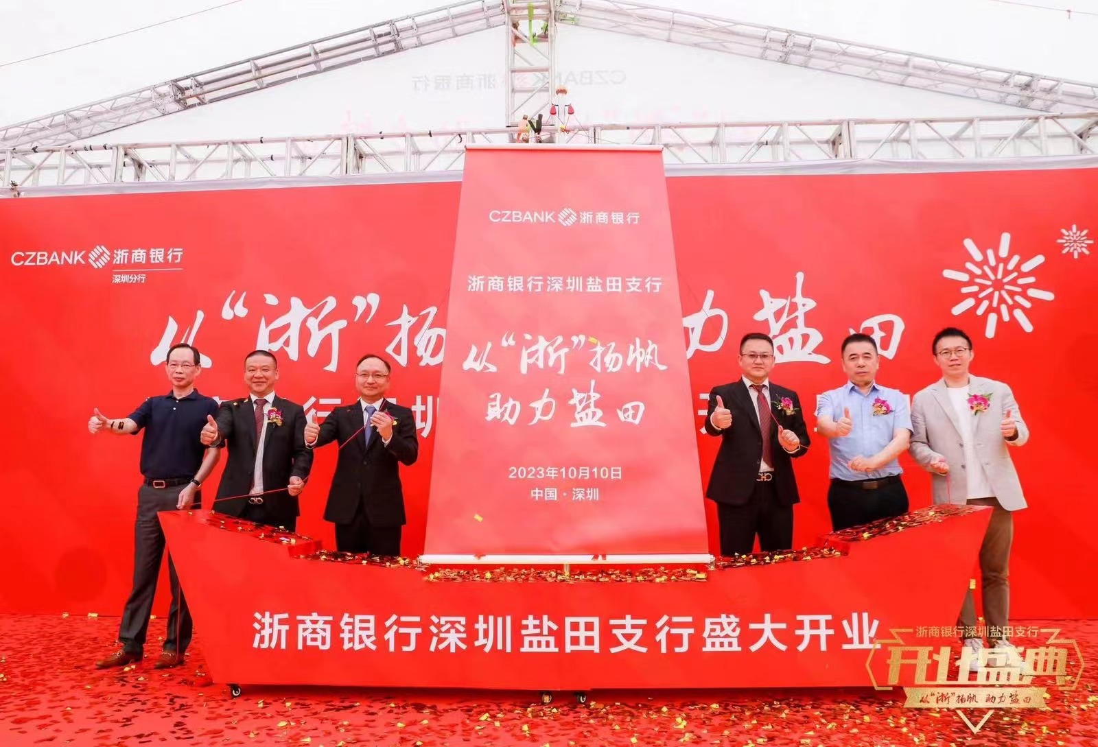 深圳新聞網(wǎng)2023年10月10日訊(記者 朱琳 通訊員 劉璇)10月10日,浙商銀行深圳鹽田支行舉辦了“從浙揚帆,助力鹽田”開業(yè)慶典。鹽田區(qū)人民政府副區(qū)長周建軍,鹽田區(qū)工業(yè)和信息化局局長汪大鵬,浙商銀行深圳分行黨委書記、行長樓瞿華,浙商銀行深圳分行黨委委員、紀委書記、風險監(jiān)控官郭維奇,華南城控股集團執(zhí)行董事覃文忠,浙商銀行深圳鹽田支行行長葉藝華以及鹽田發(fā)展改革局、鹽田區(qū)科技創(chuàng)新局、鹽田區(qū)財政局等機構(gòu)負責人、企業(yè)商會代表60余人出席。