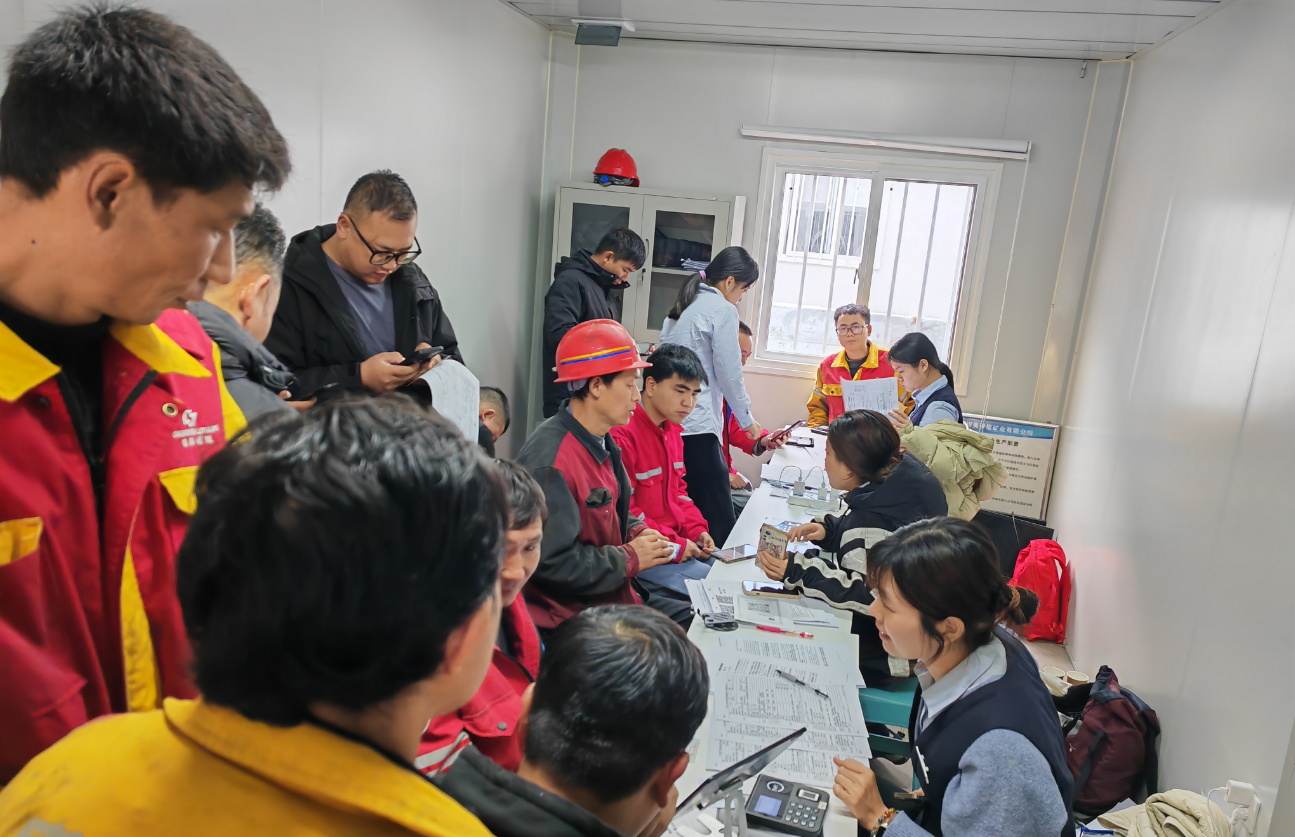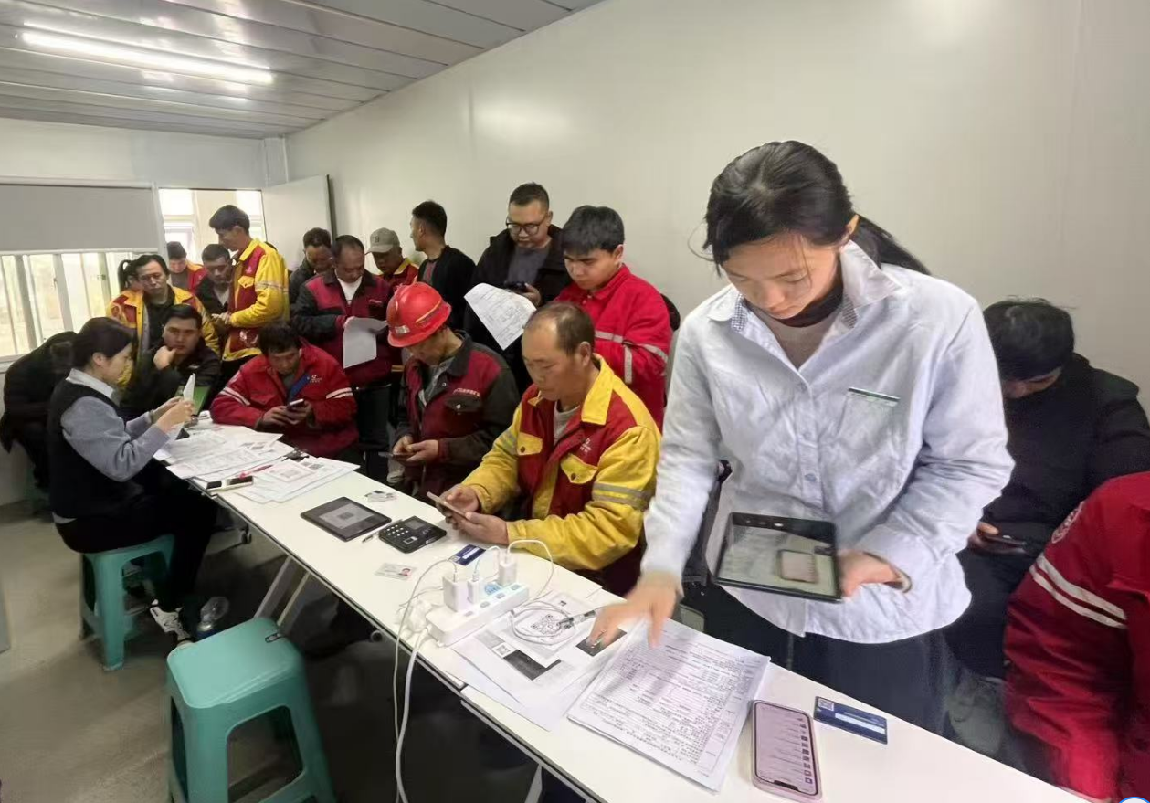 面對(duì)困難,陳嘉濤深知客戶需求無(wú)小事。他果斷決定帶隊(duì)前往現(xiàn)場(chǎng),為當(dāng)?shù)貑T工集中辦理銀行卡開(kāi)卡及工資代發(fā)相關(guān)手續(xù)。從繁華的深圳到偏遠(yuǎn)的高原,路途遙遠(yuǎn)、舟車(chē)勞頓,加上高原反應(yīng)帶來(lái)的身體不適,讓整個(gè)團(tuán)隊(duì)面臨嚴(yán)峻考驗(yàn)。但他們沒(méi)有絲毫退縮,抵達(dá)后便迅速搭建臨時(shí)服務(wù)點(diǎn),投入到緊張的工作中。