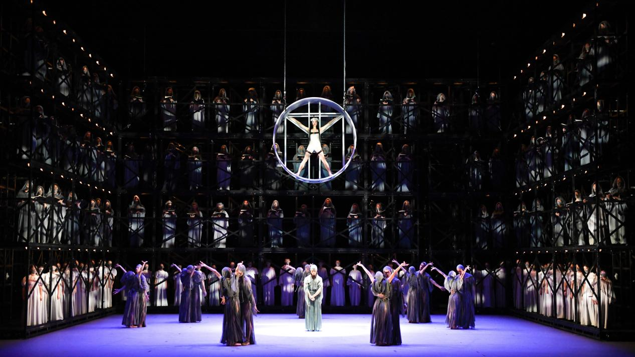 《布蘭詩歌》演出包含《布蘭詩歌》與《最后的歌》,由香港芭蕾舞團和香港管弦樂團聯(lián)袂呈獻。作品皆取材經(jīng)典藝術(shù)IP,環(huán)繞舞臺的九米高臺營造出修道院內(nèi)景,過百位歌唱家現(xiàn)場演唱,場面震撼。