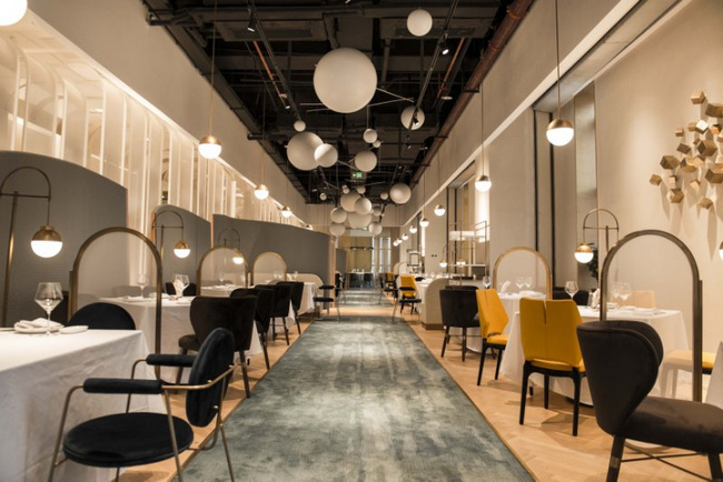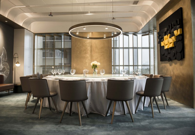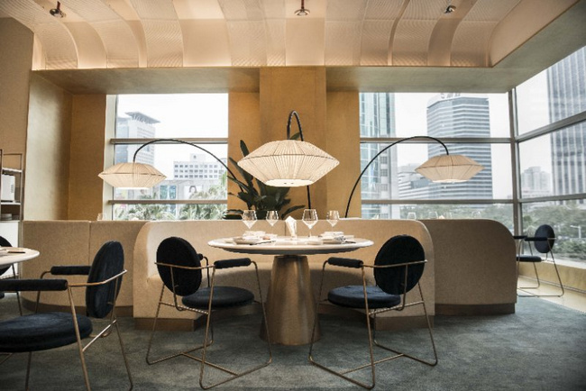 以黑色和金色為主色調(diào)的梧桐PLUS,選用流動(dòng)的線(xiàn)條對(duì)餐廳空間進(jìn)行分割。桌與桌之間的距離保證了食客對(duì)話(huà)的私密性和安全性。即使沒(méi)有預(yù)定到包廂,也不用擔(dān)心旁邊食客的閑聊會(huì)影響到彼此。