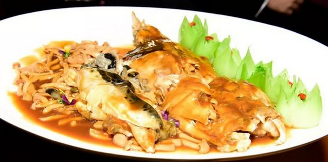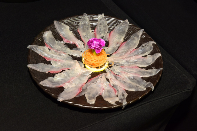 本次品鑒會晚宴以富谷紅鰭東方鲀?yōu)橹黝},共呈現了七道河豚及相關產品菜品:包括:紅燒河豚、白汁河豚、白溜河豚魚片、紅燒海參靈芝菇、河豚魚皮絲、河豚魚丸湯、河豚魚水餃等,與會嘉賓共同品鑒,對河豚食材鮮美贊不絕口。(常軍平)