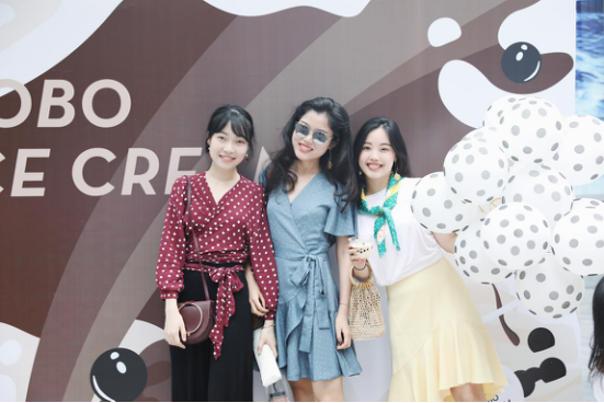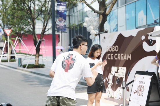 活動當(dāng)天,只要身穿波點元素衣服,就可在波波巴士站領(lǐng)取一杯喜茶派送的新鮮現(xiàn)做的“波波冰淇淋”。互動玩法也更加豐富,除了現(xiàn)場設(shè)置了很多互動拍照的小道具和背景之外,還新添加了抽獎、飛鏢游戲環(huán)節(jié),并為消費者準(zhǔn)備了多樣波波冰淇淋周邊,如喜茶定制波波手機殼、波波冰淇淋扇子、波波冰淇淋貼紙等等。