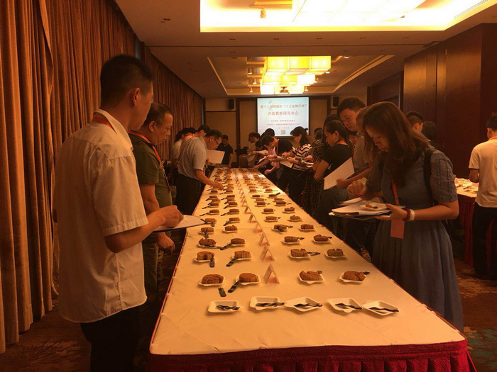 深圳市食品行業(yè)協(xié)會(huì)在8月21日組織進(jìn)行了評(píng)選,評(píng)選由深圳市食品行業(yè)協(xié)會(huì)專家委員會(huì)的專家和參評(píng)企業(yè)的專家(每個(gè)參評(píng)企業(yè)參加一名)共同組成評(píng)選組,協(xié)會(huì)從專家委員會(huì)中隨機(jī)抽取了5位專家,每個(gè)參評(píng)企業(yè)自行派一人組成評(píng)選組,并推選出一位專家為評(píng)選專家組組長(zhǎng),將參評(píng)的月餅品牌及廠家名稱全部去掉,采取無記名編號(hào)的方式,由專家現(xiàn)場(chǎng)評(píng)選。各位專家按“十大評(píng)選標(biāo)準(zhǔn)”,從參評(píng)廠家的產(chǎn)品中評(píng)出“十大金牌月餅”企業(yè);同時(shí)各位專家按照“自選評(píng)選標(biāo)準(zhǔn)”,從參評(píng)廠家的產(chǎn)品中評(píng)出“最佳創(chuàng)新獎(jiǎng)”、“最佳傳統(tǒng)獎(jiǎng)”、“最佳風(fēng)味獎(jiǎng)”、“最佳品質(zhì)獎(jiǎng)”、“最佳口感獎(jiǎng)”月餅企業(yè);“最佳人氣獎(jiǎng)”由現(xiàn)場(chǎng)所有人員投票產(chǎn)生。