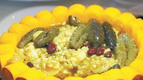 順德聯(lián)塑萬怡酒店的主廚馮耀滿推出一款非常健康的創(chuàng)新菜——南瓜五谷雜糧扒蘋果。