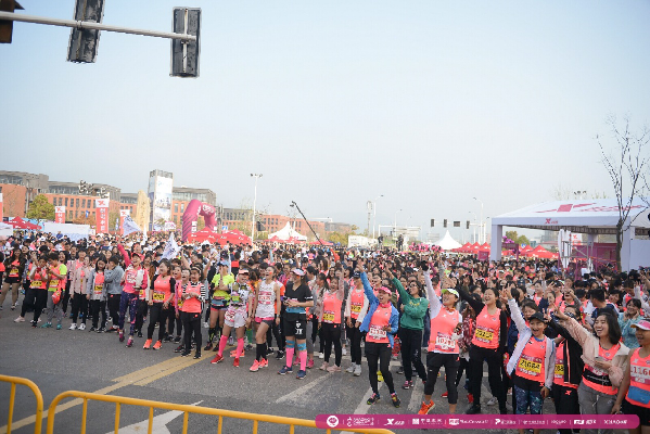 今年賽事現(xiàn)場最大的亮點(diǎn)在于,取消了開賽儀式,僅保留鳴槍一項(xiàng)流程。主會(huì)場起點(diǎn)區(qū)域沒有了大型噴繪的主席臺(tái),取而代之的是小巧簡約的發(fā)令臺(tái)。上午7點(diǎn),不間斷的熱身音樂響徹整個(gè)甜蜜小鎮(zhèn),運(yùn)動(dòng)員們在進(jìn)入賽道集結(jié)后,配合著音樂,跟隨著健身教練的指引一起熱身。上午8點(diǎn)30分,鳴槍嘉賓們準(zhǔn)時(shí)登臺(tái)鳴槍,全體3000多名跑者一起沖出起點(diǎn)門,化作一片粉紅色的海洋,向著終點(diǎn)奔去?!叭∠_賽儀式對(duì)跑者來說是非常貼心的一項(xiàng)舉措,讓我們在進(jìn)入賽道之后依然能夠繼續(xù)熱身,時(shí)間一到準(zhǔn)時(shí)開跑,整個(gè)參賽流程也更加流暢了?!眳①愡x手在賽事現(xiàn)場直言道,簡化起跑前的儀式流程,對(duì)于跑者來說是一種更好的參賽體驗(yàn)。