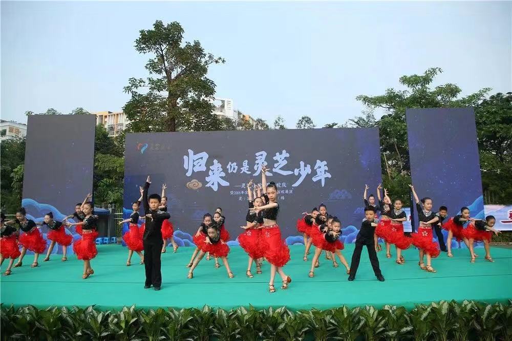 校慶當(dāng)天,近兩個(gè)小時(shí)的“歸來仍是靈芝少年”的展演,編排精巧,分萌芽、追夢(mèng)、綻放、芳華、展望五個(gè)篇章,有合唱、師生舞蹈、健美操、詩歌朗誦、器樂表演等。整臺(tái)節(jié)目既生動(dòng)反映了靈芝小學(xué)從無到有,從小變大的發(fā)展歷程,更全面展示了學(xué)校五年來砥礪前行所取得的累累碩果。