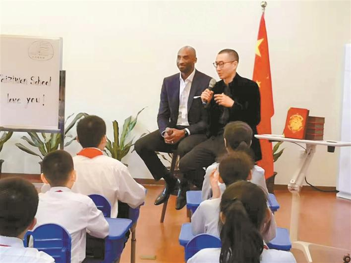 “來(lái)了,來(lái)了!”隨著人群的騷動(dòng),一個(gè)高大的身影閃了進(jìn)來(lái),科比手捧一束鮮花來(lái)到了課堂。科比的到來(lái),讓大家正襟危坐,聽從偶像的人生教誨。