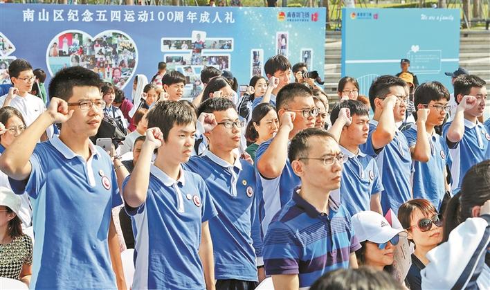 深圳特區(qū)報(bào)5月14日訊 “我是中華人民共和國公民,在十八歲成年之際,面對國旗,莊嚴(yán)宣誓……”近日,“2019‘青春心向黨建功新時(shí)代’南山區(qū)紀(jì)念五四運(yùn)動100周年成人禮”在深圳灣公園潮汐廣場舉行,來自南山區(qū)各所高中的260名中學(xué)生佩戴成人徽章,面向國旗莊嚴(yán)宣誓。這是繼去年團(tuán)中央出臺成人儀式規(guī)范文件后,南山率先嘗試開展的區(qū)域性成人禮。