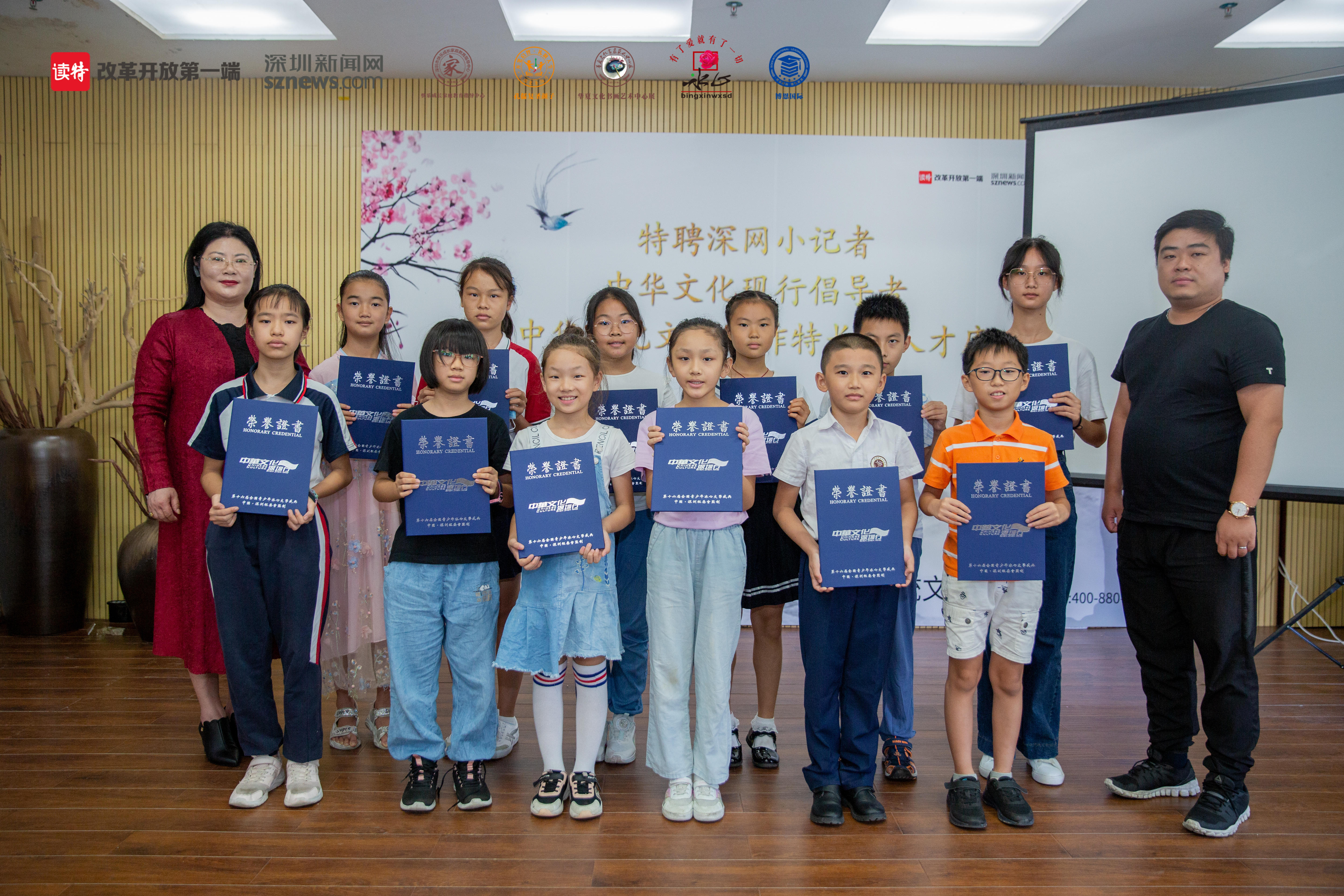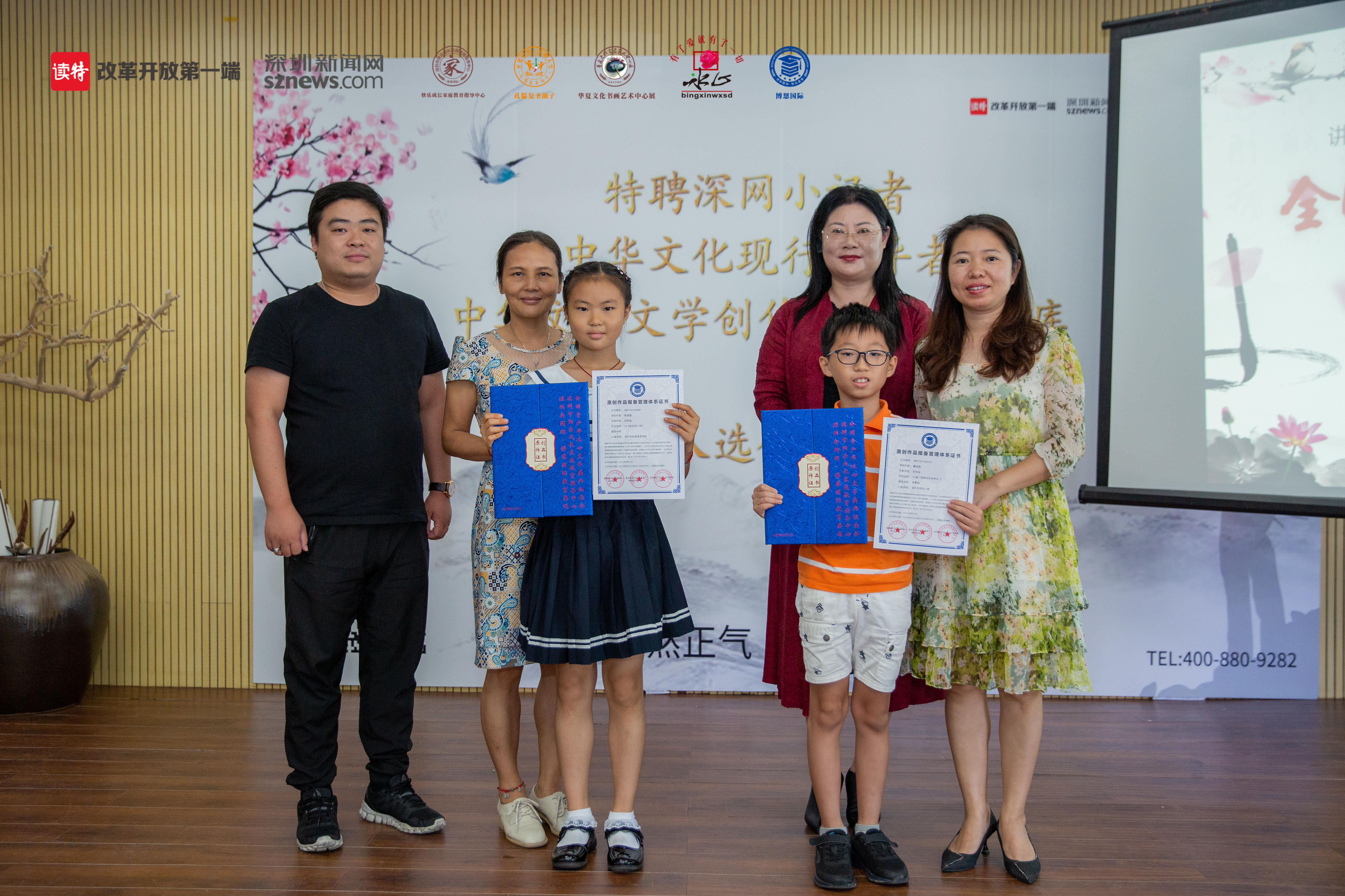 活動(dòng)現(xiàn)場(chǎng),組委會(huì)還為入選《中華文化現(xiàn)行倡導(dǎo)者》、《中華文化文學(xué)特長(zhǎng)生人才庫(kù)》、深網(wǎng)小記者、《原創(chuàng)作品報(bào)備》、復(fù)賽晉級(jí)生等優(yōu)生代表頒獎(jiǎng)?lì)C證。