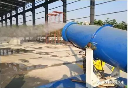 6號線支線嚴(yán)格落實(shí)"7個100%",做到綠色施工:施工圍擋及外架100%全封閉,出入口及車行道100%硬底化,出入口100%安裝沖洗設(shè)施,易起塵作業(yè)面100%濕法施工,裸露土及易起塵物料100%覆蓋,出入口100%安裝總懸浮顆粒物在線監(jiān)測設(shè)備。