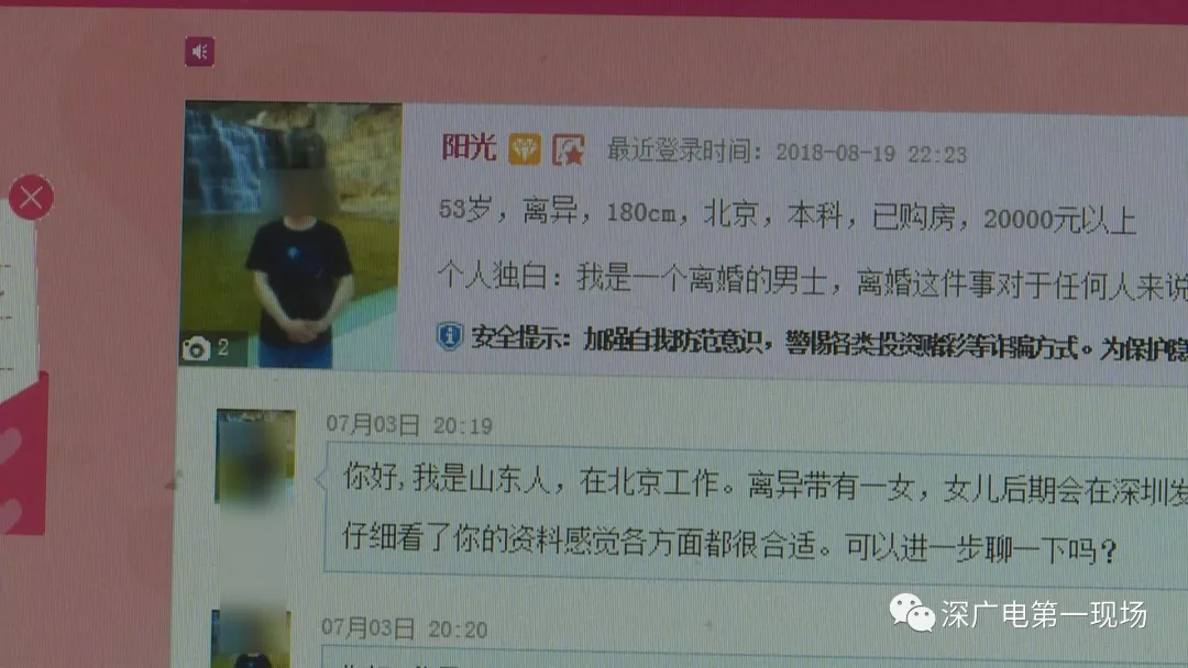 這名男子自稱姓劉,在北京做高級(jí)會(huì)計(jì)師,主要為上市公司做輔導(dǎo),網(wǎng)站注冊(cè)信息顯示月薪2萬(wàn)到5萬(wàn)元,名下有車有房,年齡為53歲。張女士衡量之下,感到對(duì)方條件還不錯(cuò)。