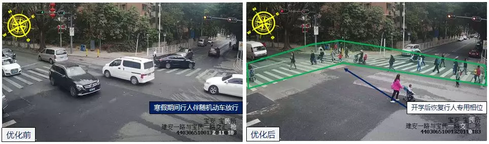 為了保障學(xué)生安全過街,深圳交警恢復(fù)黃貝/德智路口上下學(xué)時段信號燈管控模式,非上下學(xué)時段啟用黃閃控制模式。