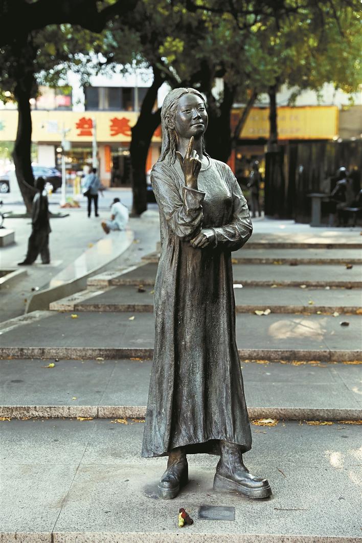 《深圳人的一天》雕塑中的“股民”形象。深圳晚報(bào)記者楊少昆攝