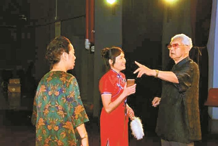 2019年4月,譚嗣英(右一)在2018~2019年深圳中老年藝術(shù)團隊年度優(yōu)秀節(jié)目展演《祖國頌》系列節(jié)目彩排時現(xiàn)場指導(dǎo)。