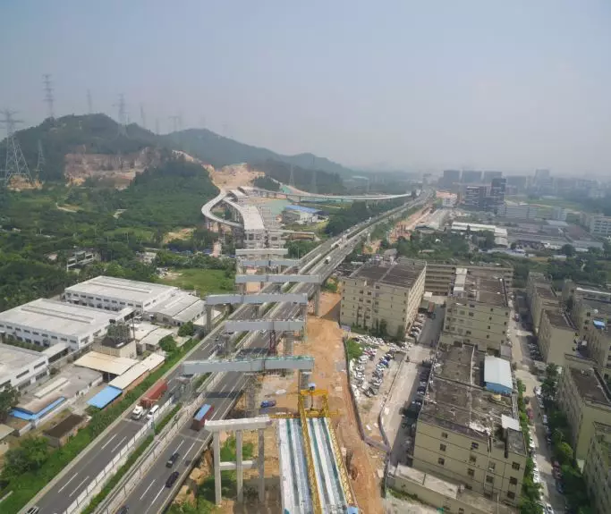 外環(huán)高速一期工程路線長51km,其中沙井至觀瀾段35.67km、龍城至坪地段15.06km。
