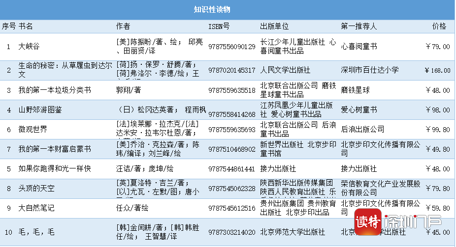 見圳客戶端·深圳新聞網2020年6月1日訊(記者 馬璇 通訊員 周知)第七屆“我最喜愛的童書”閱讀推廣活動自4月23日啟幕以來,全國34家單位強強聯(lián)手,共同打造國內具公信力、影響力的少兒閱讀推廣活動。經過專家學者推選、網絡投票等環(huán)節(jié),30強圖書于6月1日火熱出爐。