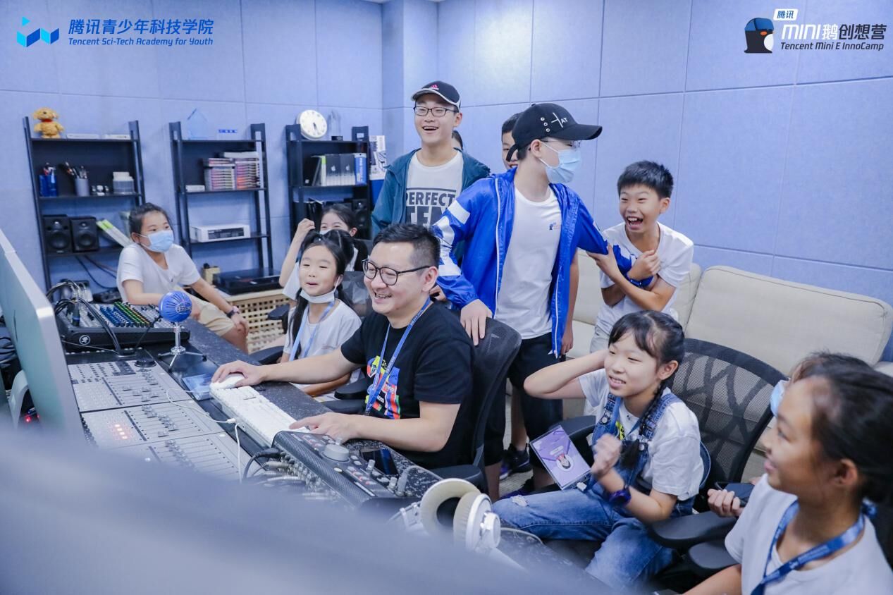 騰訊CROS音頻團隊導師在專業(yè)錄音棚指導學員們進行音頻錄制與剪輯
