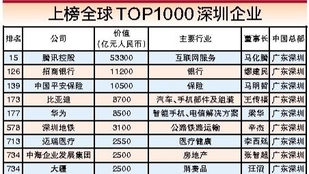 榜單在深發(fā)布!15家深圳企業(yè)上榜全球1000強