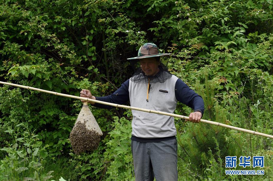 5月10日,在甘肅省隴南市徽縣大河店鎮(zhèn)硬灣村,蜂農(nóng)周仲頤在收蜂。 甘肅省隴南市徽縣大河店鎮(zhèn)硬灣村位于秦巴山區(qū)深處,2017年,在當?shù)卣姆龀窒?,龍崖老巢蜜養(yǎng)殖農(nóng)民專業(yè)合作社成立,蜂農(nóng)們將傳統(tǒng)養(yǎng)蜂技藝和現(xiàn)代加工方式相結合,并通過電商等渠道打開銷路,有效帶動了當?shù)刎毨Т迕衩撠氈赂?。目前整個合作社共有蜂箱2000余個,每箱每年可帶來三四千元的收入。 新華社記者 馬寧 攝