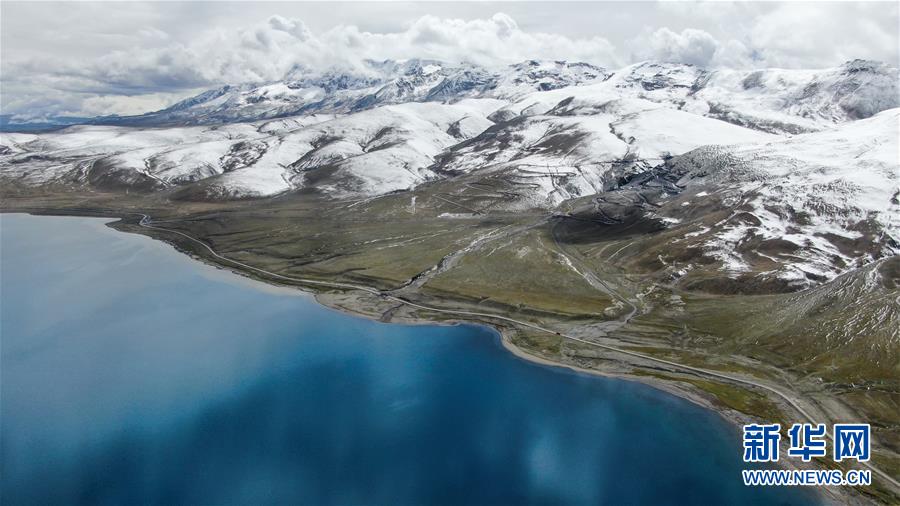 8月31日無(wú)人機(jī)拍攝的羊卓雍錯(cuò)及邊上的307省道。新華社記者晉美多吉攝