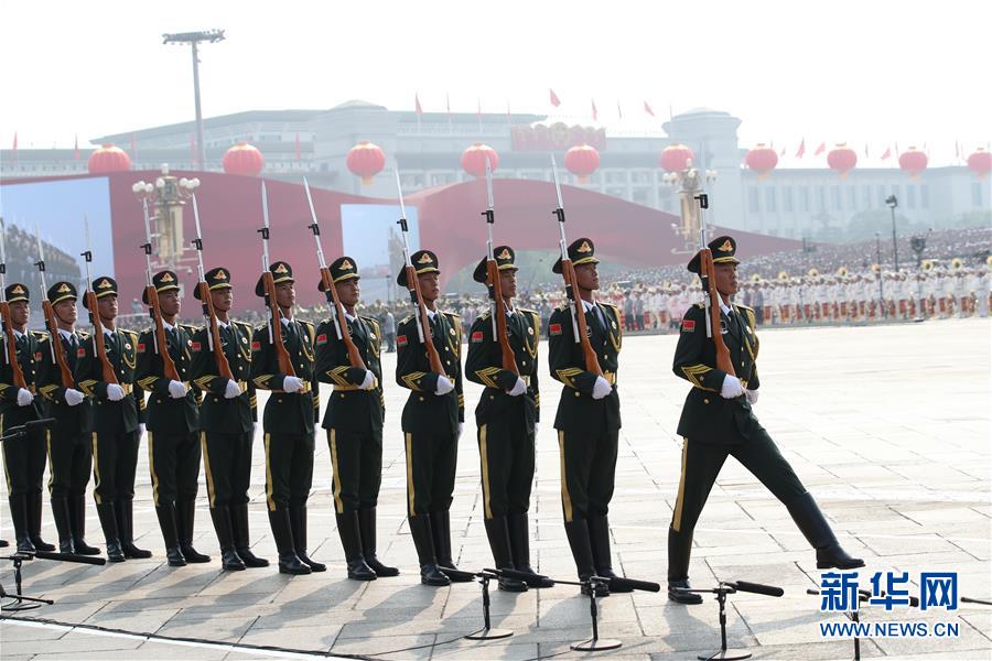 10月1日上午,慶祝中華人民共和國(guó)成立70周年大會(huì)在北京天安門廣場(chǎng)隆重舉行。這是標(biāo)兵就位。新華社記者孟永民攝