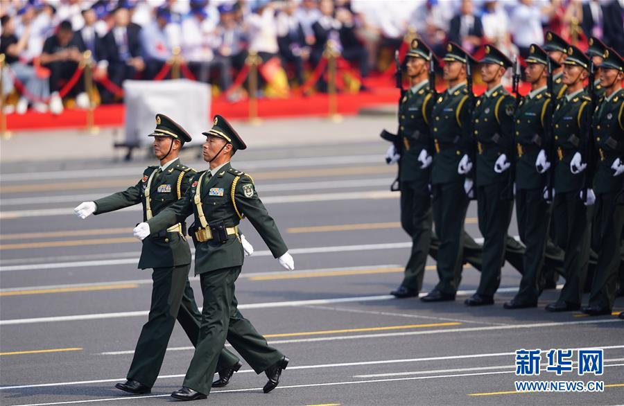 10月1日上午,慶祝中華人民共和國成立70周年大會(huì)在北京天安門廣場隆重舉行。這是陸軍方隊(duì)通過天安門廣場。新華社記者周密攝