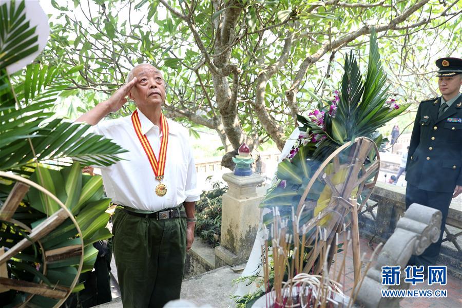 9月30日,在越南北部河南省,一名中國援越老兵向中國烈士紀念碑敬禮。 中國駐越南大使館館員、中國援越老戰(zhàn)士及其親屬、在越中資機構(gòu)和留學(xué)生代表等30日前往位于越南河南省的金榜烈士陵園,祭奠長眠于此的14名中國援越烈士。越中友協(xié)副主席阮榮光等越方代表也參加了祭掃活動。 新華社記者 王迪 攝