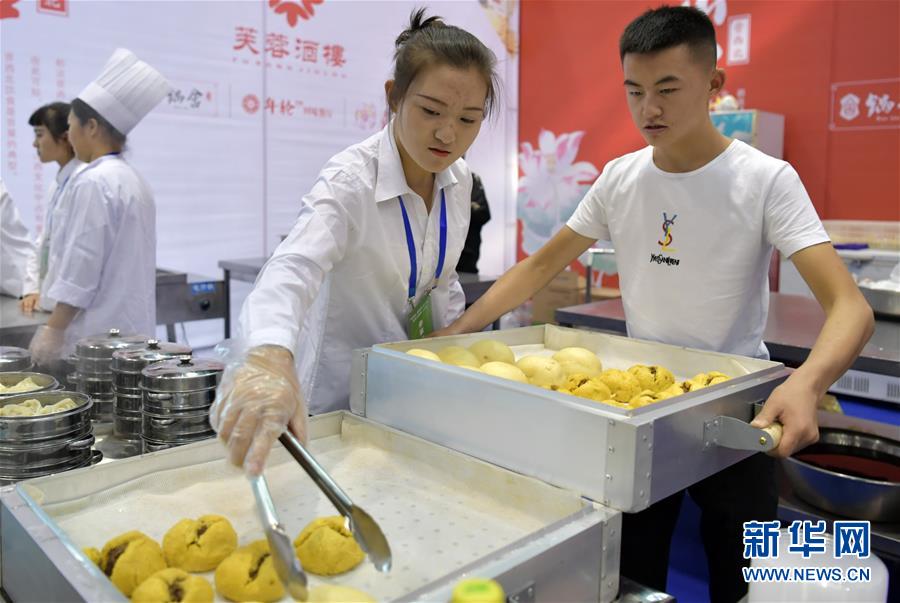 10月3日,工作人員在整理制作好的面點(diǎn)。新華社記者 曹陽 攝