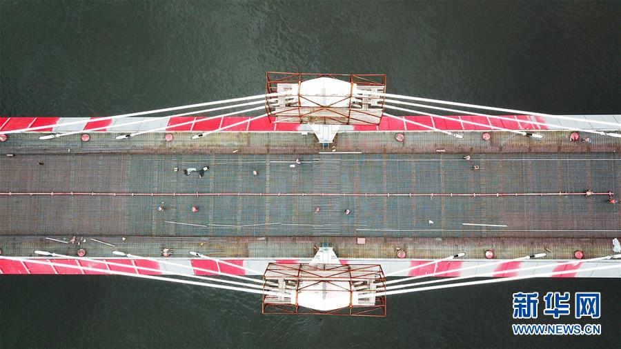工人在大橋上進(jìn)行橋面鋪裝施工作業(yè)(8月19日攝)。新華社記者 王建威 攝