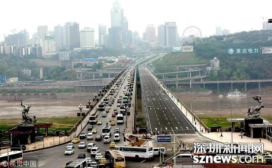 【跨度最大的梁橋——重慶石板坡長江復(fù)線大橋】重慶石板坡長江大橋復(fù)線橋跨徑330米,于2003年12月正式動(dòng)工,2006年8月28日竣工通車,全長1103.5米,寬19米,為單向四車道,設(shè)計(jì)日通行能力8萬輛。