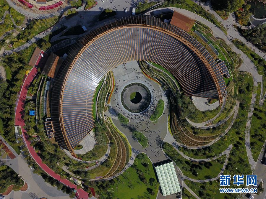 北京世園會國際館(10月6日無人機(jī)拍攝)。新華社記者張晨霖攝