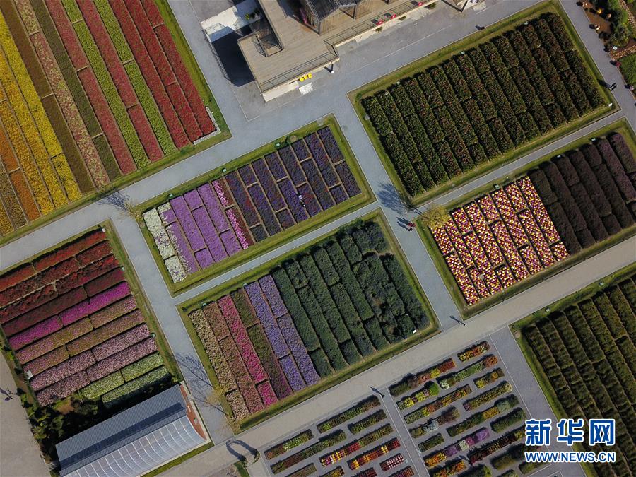北京世園會園藝小鎮(zhèn)(10月7日無人機(jī)拍攝)。新華社記者鞠煥宗攝