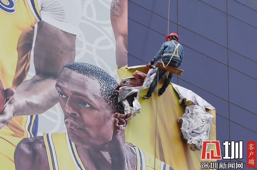 “2019NBA球迷之夜”取消 上海正大廣場外圍巨幅NBA中國賽海報(bào)被拆除