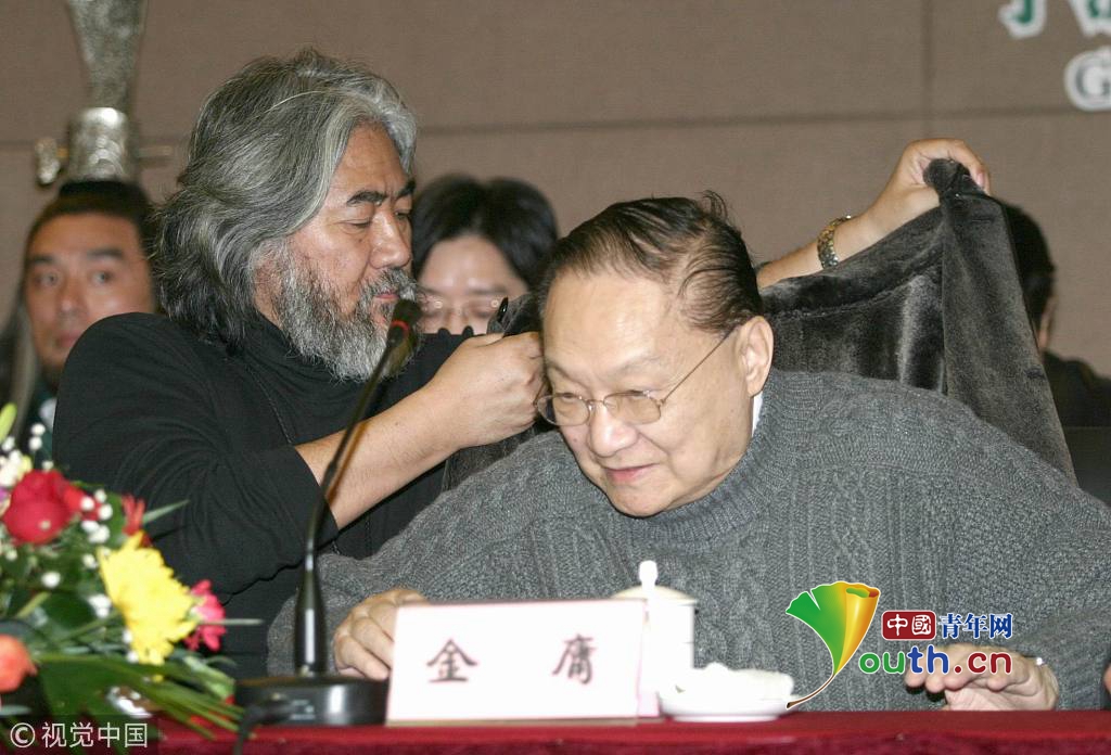 2003您7月24日,杭州,在回答記者提問時,金庸先生回答說已經(jīng)收了3個學(xué)生。圖片作者:羅先明