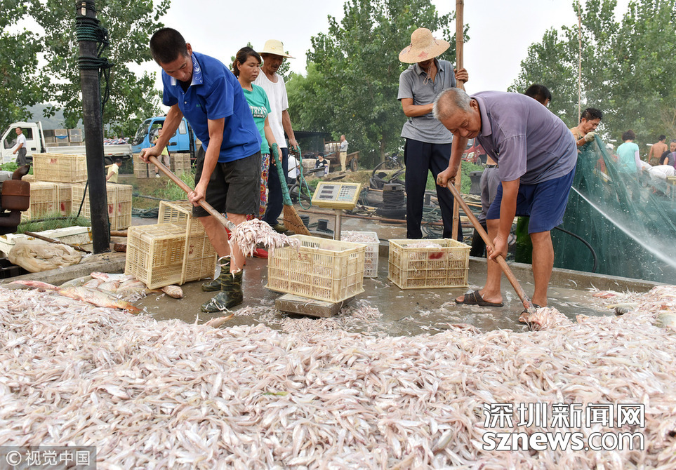 2018年8月12日,江蘇淮安洪澤湖全面開捕第四天,漁民進(jìn)入銀魚和毛刀魚捕撈高峰期。