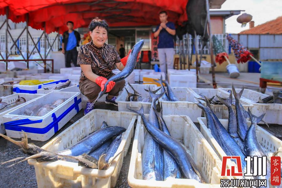 一筐筐的刀魚、鯧魚、鲅魚,很快被運(yùn)輸?shù)脚R近的興海門海鮮批發(fā)市場,市場里人頭攢動(dòng)、熙熙攘攘,就像趕年集一般,一派購銷兩旺的景象。