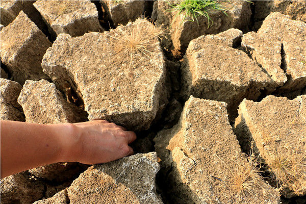 2019年10月4日,江西彭澤縣黃嶺鄉(xiāng)芳湖村,池塘干枯見(jiàn)底。洪永林/視覺(jué)中國(guó)