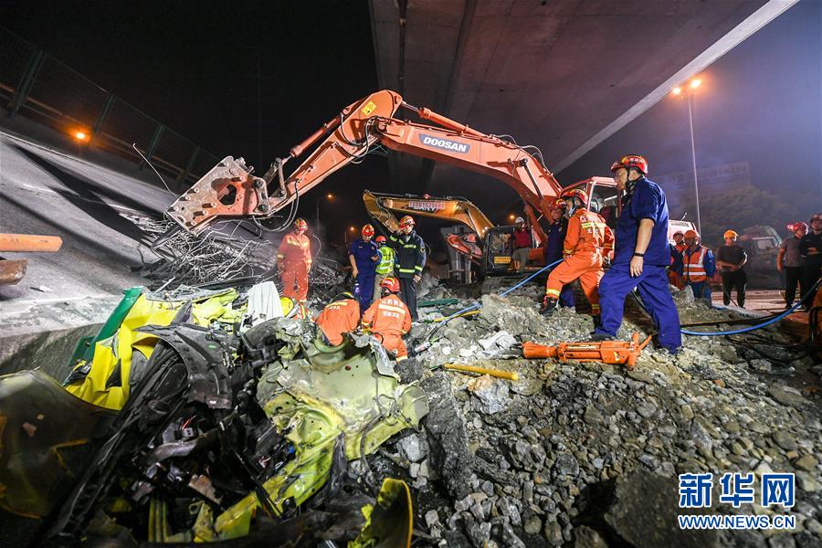 2019年10月10日晚,江蘇無錫,312國道上海方向錫港路上跨橋路段出現(xiàn)橋面垮塌,現(xiàn)場有多輛轎車被壓,具體傷亡情況不詳。救援車輛已抵達現(xiàn)場。
