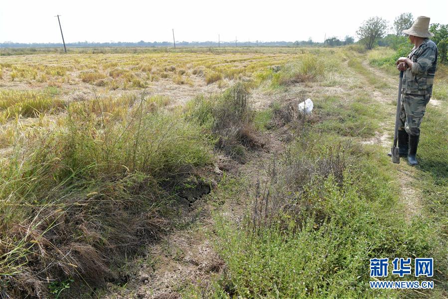 江西省南昌市南昌縣蔣巷鎮(zhèn)一農(nóng)戶在田里查看中稻的收割情況和晚稻的生長情況,農(nóng)田兩側(cè)的水渠已干涸多日(10月10日攝)。 7月下旬至10月初,江西省平均降雨量為96毫米,比多年均值偏少約七成,排歷史同期倒數(shù)第一位,持續(xù)的少雨天氣導(dǎo)致江西省主要江河水位持續(xù)走低,多地出現(xiàn)不同程度的旱情。 針對(duì)當(dāng)前旱情,江西各地紛紛采取措施,積極組織群眾開展抗旱自救,力爭將旱情帶來的損失降到最低。 新華社記者 彭昭之 攝