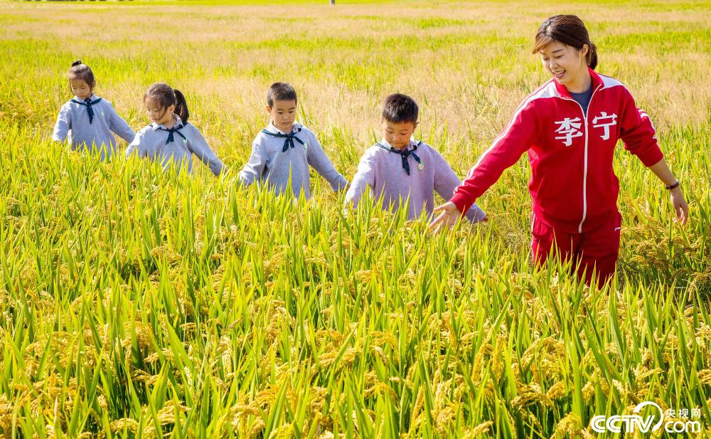 2019年10月15日,浙江省湖州市長興縣開發(fā)區(qū)實驗幼兒園的老師帶領(lǐng)孩子們走進稻田,感受豐收的喜悅。圖片來源:視覺中國