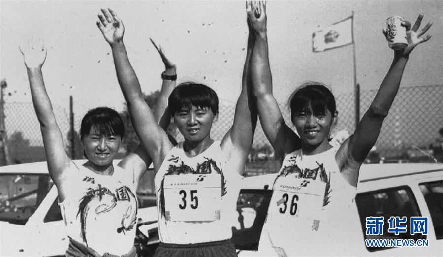 1995年9月12日,在羅馬舉行的第一屆世界軍人運(yùn)動會軍事五項(xiàng)比賽中,中國人民解放軍代表隊(duì)包攬了男女團(tuán)體和個(gè)人四枚金牌以及男子個(gè)人銀牌、銅牌和女子個(gè)人銅牌。這是獲得女子團(tuán)體冠軍的王戀英、邵文芳和宋麗芳(右起)獲勝后振臂歡呼。新華社記者王繼雨攝