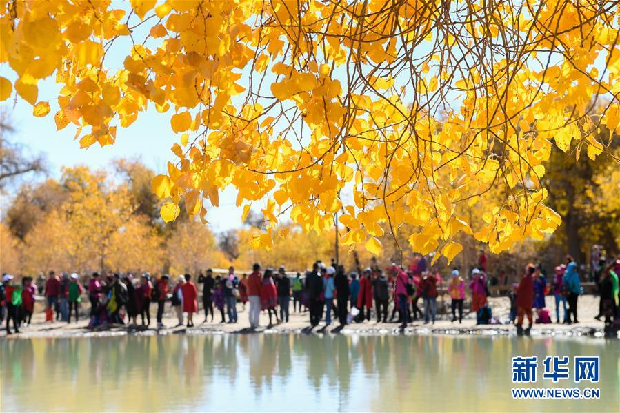 10月10日,在內(nèi)蒙古自治區(qū)額濟(jì)納旗,游客在觀賞胡楊林。金秋時(shí)節(jié),內(nèi)蒙古自治區(qū)額濟(jì)納旗胡楊林如同披上金裝,成為大漠中的一抹亮色,吸引眾多中外游客前來觀賞游玩。新華社記者劉磊攝