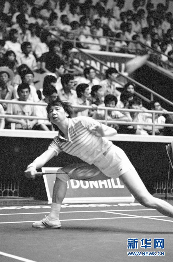 圖為韓愛(ài)萍在杭州舉行的第二屆世界羽毛球錦標(biāo)賽女子單打比賽中跨步救球(資料照片),她最終奪得女單冠軍。新華社記者胡越攝