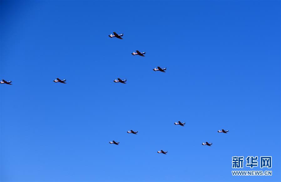 10月17日,“天之翼”飛行表演隊(duì)進(jìn)行飛行表演。 當(dāng)日,慶祝人民空軍成立70周年航空開放活動(dòng)在吉林長春開幕??哲姸嘀эw行表演隊(duì)、跳傘表演隊(duì)共舞藍(lán)天,殲-20、運(yùn)-20、殲-16等多款主力戰(zhàn)機(jī)展翅蒼穹,空降兵和航空兵作戰(zhàn)部隊(duì)派出精銳力量展示作戰(zhàn)對(duì)抗,多型武器裝備大規(guī)模、全系統(tǒng)抵臨現(xiàn)場。人民空軍以前所未有的強(qiáng)大陣容亮相長春,頌揚(yáng)中國航空事業(yè)110年發(fā)展成就,以開放、自信的姿態(tài)為即將到來的人民空軍70華誕獻(xiàn)上大禮。 新華社記者 張楠 攝