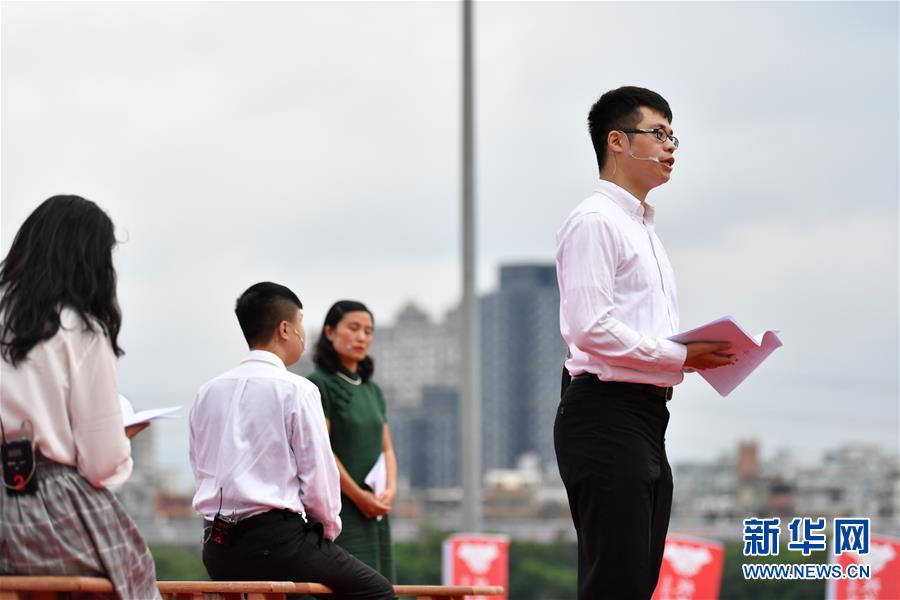 10月19日,參與秋祭活動(dòng)的年輕人在活動(dòng)現(xiàn)場表演行動(dòng)劇《激進(jìn)1949》。  新華社記者 陳斌 攝