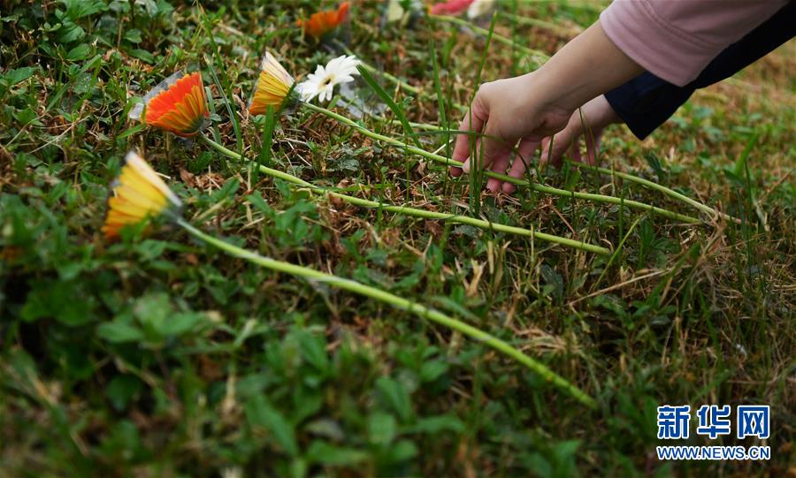 10月19日,參與秋祭活動(dòng)的民眾在活動(dòng)現(xiàn)場獻(xiàn)花。  新華社記者 陳斌 攝