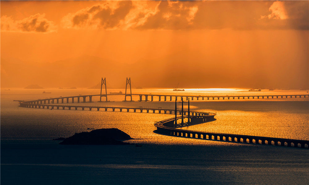 2018年7月17日,廣東珠海,傍晚時分,繁忙的青州航道。港珠澳大橋是“一國兩制”框架下粵港澳三地首次合作建設的大型跨海交通工程,也是世界上最長的跨海大橋工程。張由瓊/視覺中國