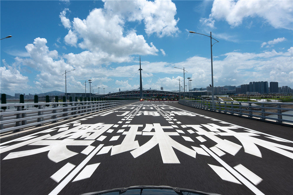10月24日午后,車輛駛往港珠澳大橋東人工島。2018年10月23日,港珠澳大橋正式開通。新華社記者張金加攝