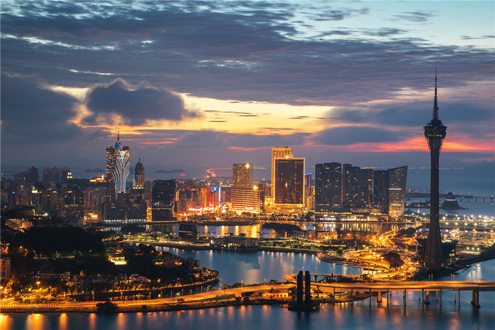 2018年6月16日,澳門,城市風光。遠處的港珠澳大橋。徐小天/視覺中國